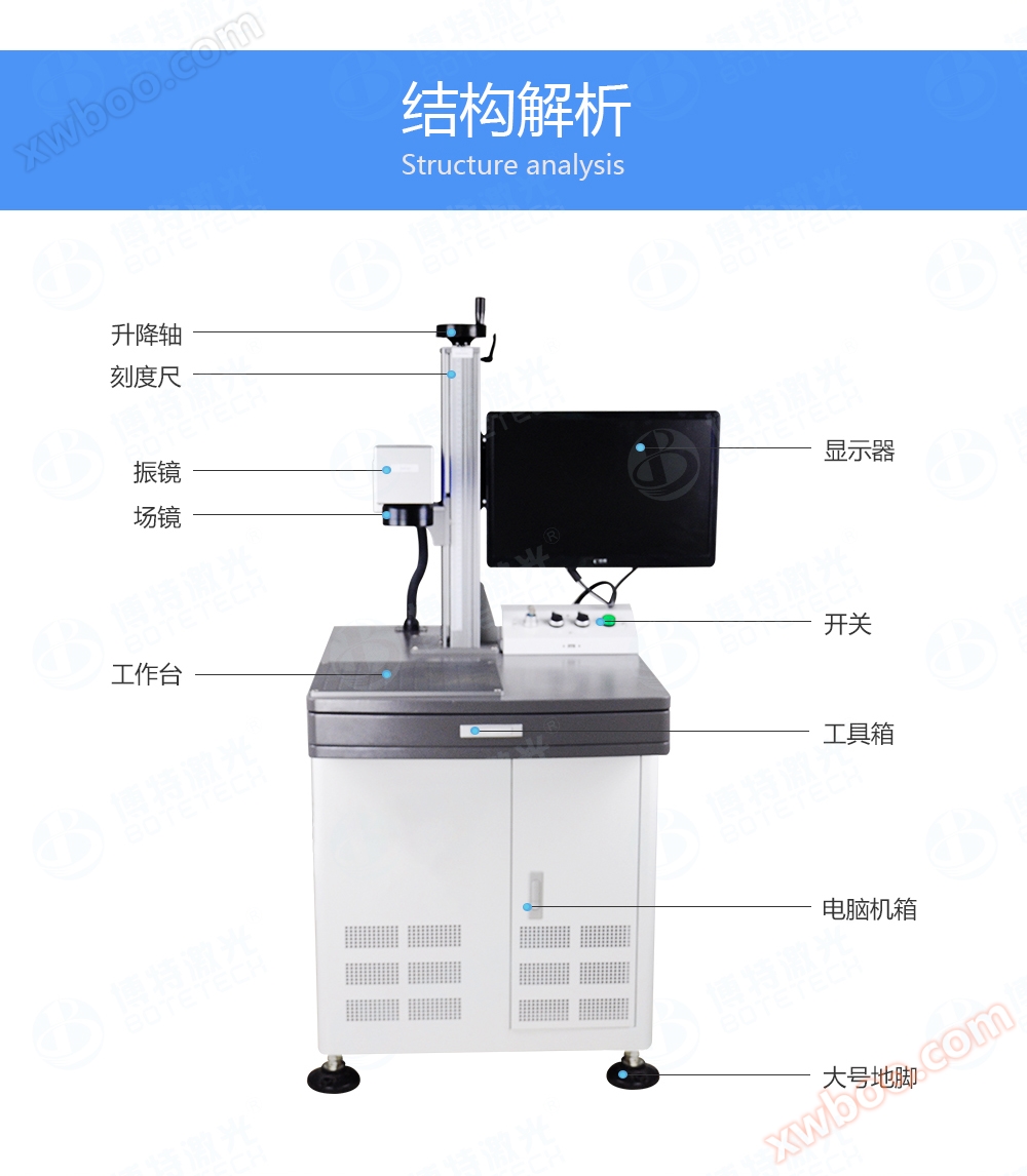 전체 기계의 구조가 간소화되고 핵심 부품은 모두 수입 배치를 채택한다;광학 시스템은 전체 밀봉 구조를 채택하여 붉은 빛 미리보기 기능을 갖추고 있어 외형이 더욱 아름답고 조작이 더욱 편리하다;광전 전환 효율이 높고 광속의 질이 높으며 선이 정교하고 반점이 작다;이 기계는 공기 냉각 방식으로 냉각되어 에너지 소모가 적다.