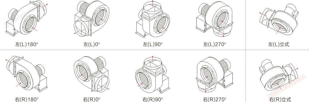 CY 시리즈 송풍기 송풍 방향 설명도