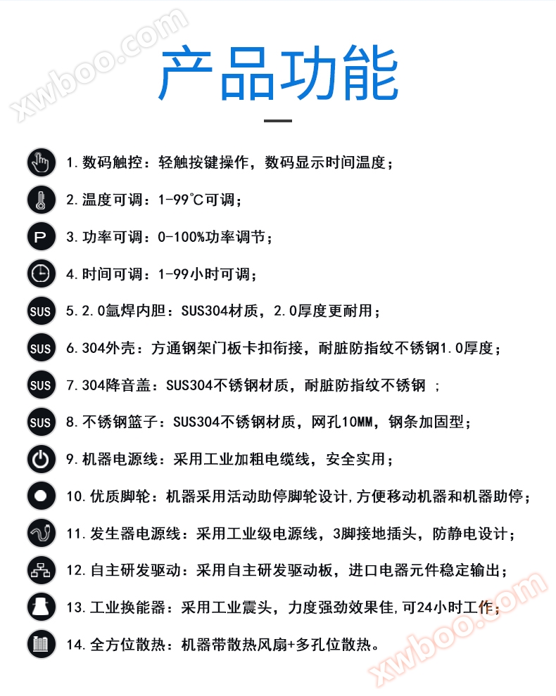 - 스테인리스 스틸 바구니: SUS304 스테인리스 스틸 재질, 그물 구멍 10MM, 스틸 바 보강형;
