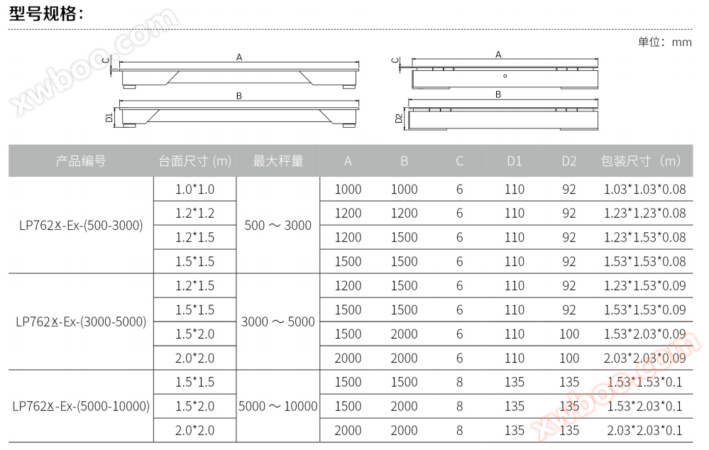 방폭 플랫폼 저울은 XK3150-Ex 본안형 계기 또는 XK3150-Exd 방폭형 계기, LP7110Q 시리즈 방폭 무게 측정 센서 및 상응하는 저울체로 구성된 방폭 무게 측정 시스템을 사용한다.외부 해상도는 10만분의 1에 달할 수 있으며 고정밀도, 초강력 방해 방지 능력을 갖추고 있다;저울대 구조는 탄소강과 스테인리스강을 선택할 수 있다.스테인리스강 방수 구조 케이스의 방수형은 도달할 수 있다IP67의; 전용II구역 폭발 방지 환경;방폭 등급은 본안형 Exib IIC T3/T4Gb, 방폭형 Exd ia IIB T4Gb;석유, 화학공업, 의약 등 폭발 방지 요구가 있는 분야에 광범위하게 사용된다.